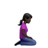 Женщина на коленях лицом вправо: очень темный тон кожи